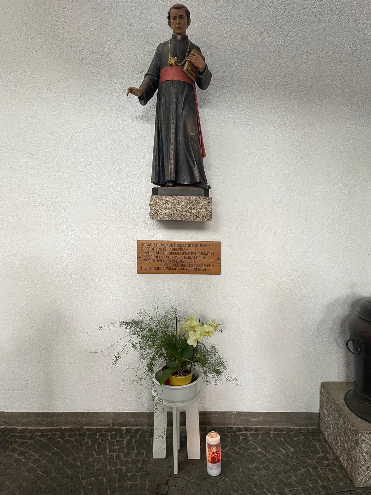 Nein, ganz so richtig ist die Überschrift nicht. Johann Nepomuk Neumann wurde zwar als Bischof von Philadelphia 1977 als erster US-amerikanischer Bischof heiliggesprochen, aber er stammt leider nicht so ganz direkt aus Obernburg. Aber fast! Reiner Zufall, dass nicht. Sein Vater nämlich war Obernburger und wanderte 1799 nach Böhmen aus. Johann Nepomuk wurde in Prachatitz geboren und getauft, nach dem Gymnasium studierte er Theologie in Budweis. Nach dem Studium ging er als Missionar in die Vereinigten Staaten, wo er 1836 zum Priester geweiht wurde. Es gab damals dort eine große deutsche Einwanderungswelle und daher Bedarf an deutschsprachigen Priestern. 1840 trat er in den Redemptoristenorden ein, 1846 wurde er Vizeprovinzial. 1852 wurde er zum Bischof von Philadelphia ernannt, wo er nicht nur den Bau der Kathedrale begann, sondern über 100 Kirchen und auch Schulen gründete. Dadurch legte er den Grundstein für das kirchliche Pfarrschulsystem in den USA.1854 wurde er, wie alle Bischöfe, nach Rom beordert zur Verkündung des Dogmas der unbefleckten Empfängnis Mariens. Diesen Besuch in Europa nutzte er auch für einen ausführlichen Heimatbesuch.1860 starb er in Philadelphia.