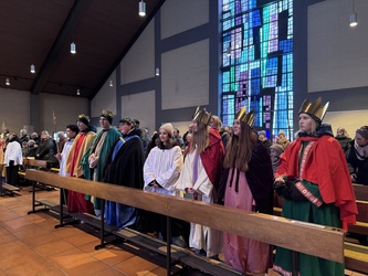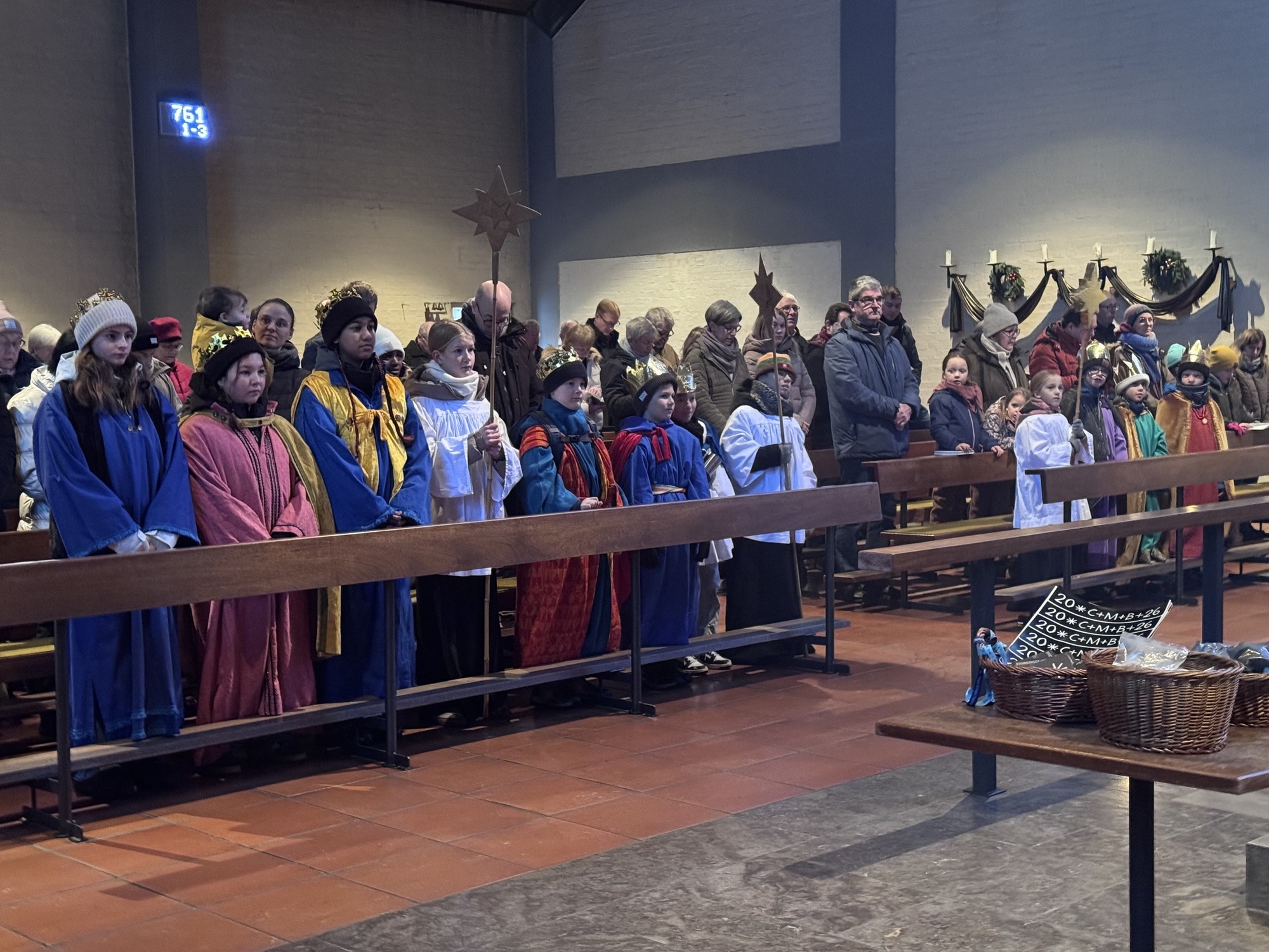 Nachdem einzelne Könige Fürbitten vorgetragen haben, für Kinder auf der ganzen Welt, die in Armut leben, für die Organisatoren und Helfer dieser Aktion, für alle, die sich für Gerechtigkeit einsetzen, für unsere Partnergemeinde in Tansania, für die Spender und ihr Wohlwollen.