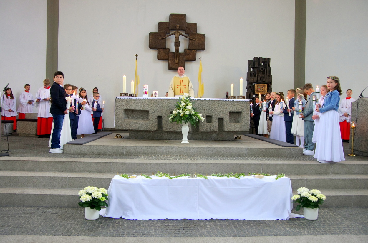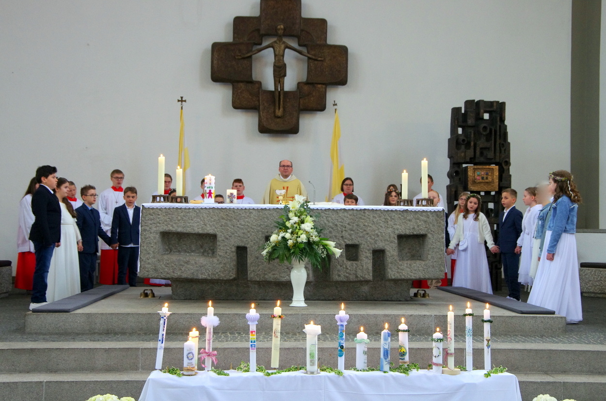 Auch zur ersten heiligen Kommunion stellten sich die Kinder um den Altar.