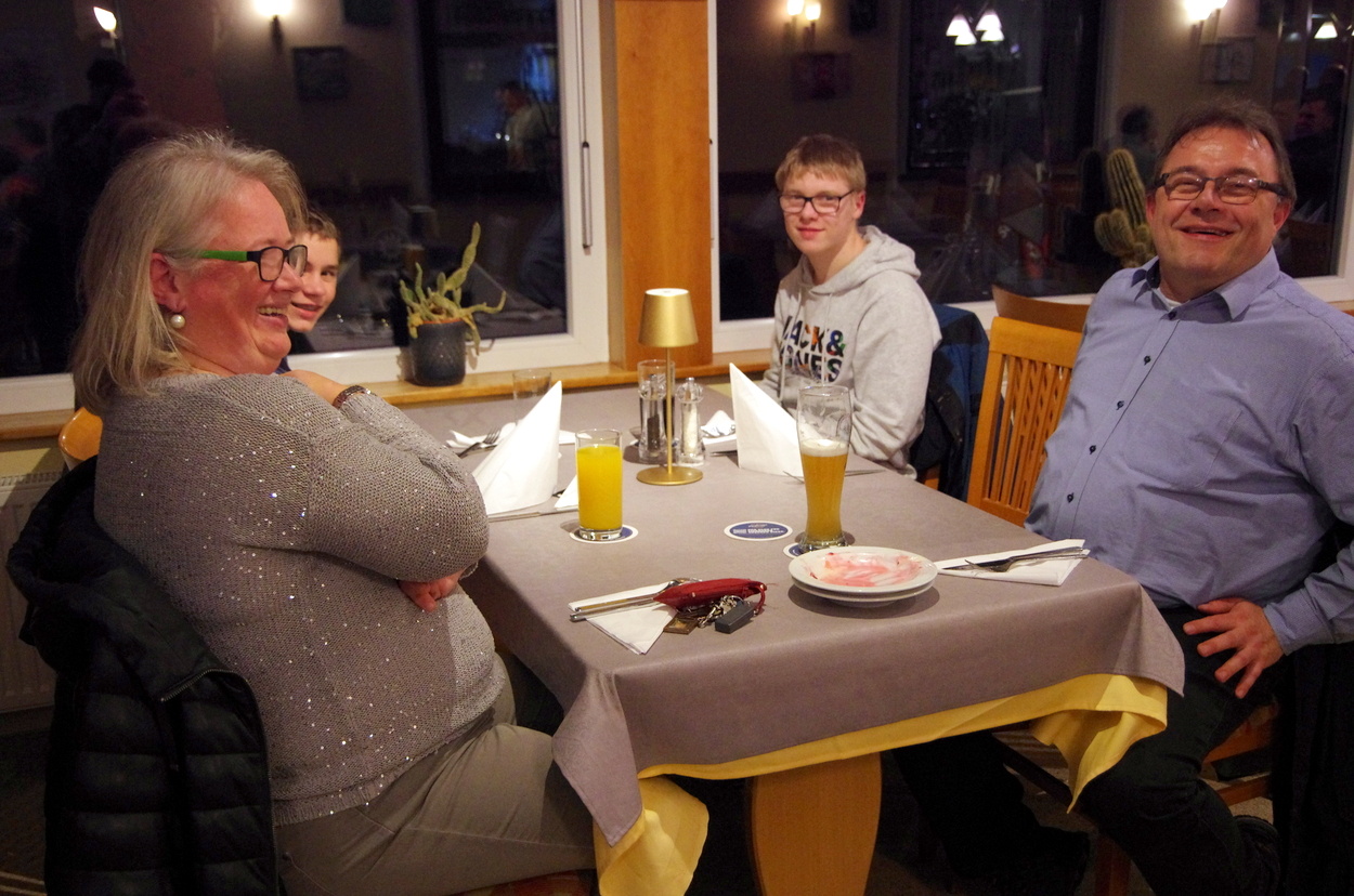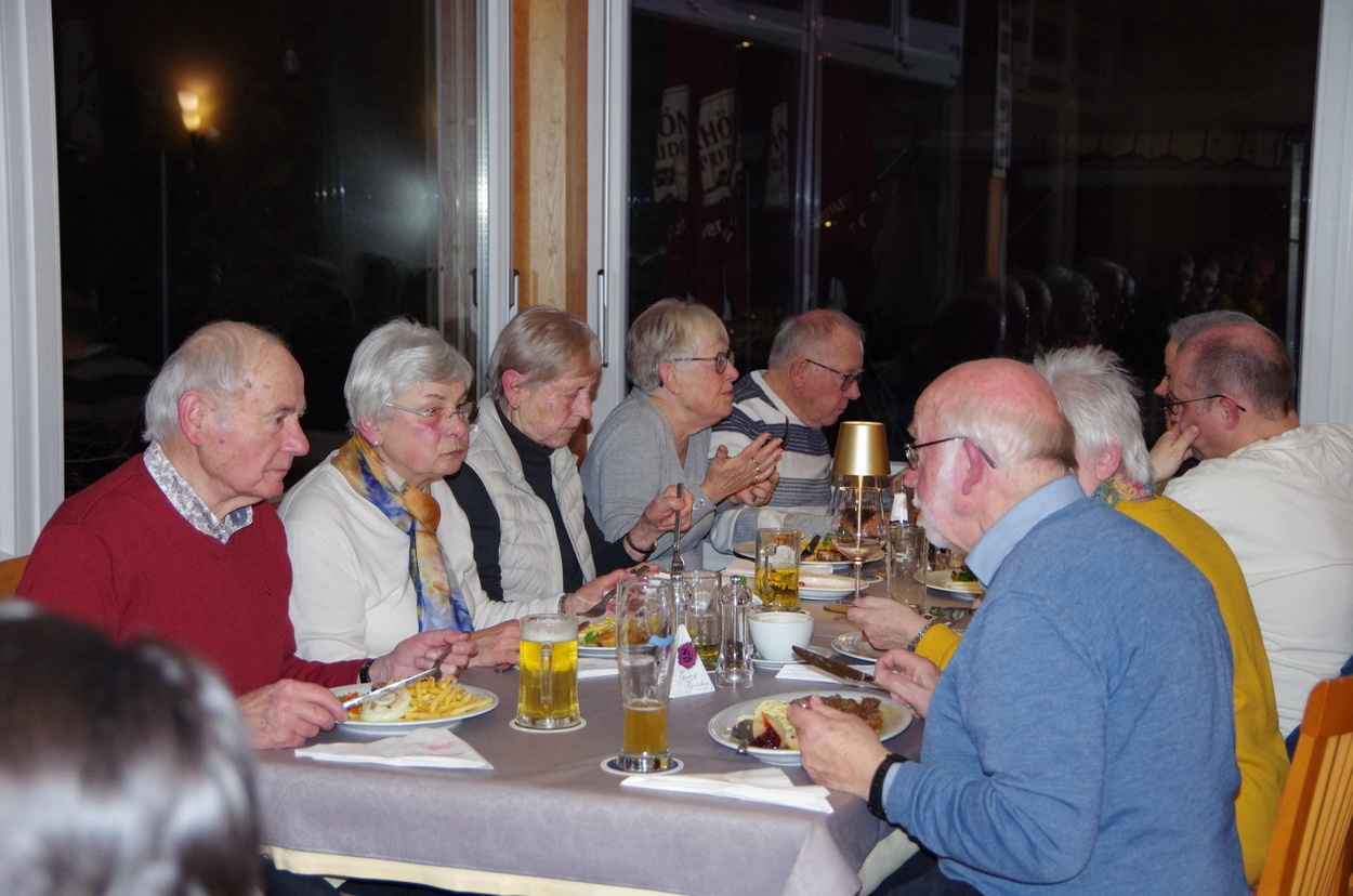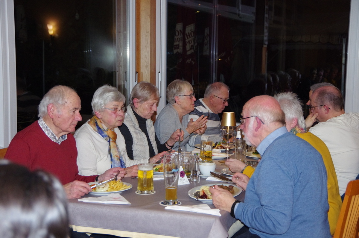 Wie jedes Jahr fand am Samstag das Helferfest der Pfarrei St. Peter und Paul in den Salztrögstuben statt. Ca 40 Personen hatten sich eingefunden, teils zu Fuß von der Kirche, um miteinander zu plaudern. Die Gemeindeteamvorsitzende Katharina Volmer begrüßte alle herzlich und dankte ihnen für ihre Tätigkeit. Sie wies darauf hin, dass im März Neuwahlen zum Gemeindeteam anstehen; es werden noch Kandidaten gesucht. Angelika Hennrich betonte mit einer Geschichte, dass es Jesus nicht darauf ankomme, wieviel "likes" unsereinander hätte und ober man schön oder häßlich sei; jeder sei von Gott geliebt. Wie schon Abraham Lincoln sage:" Gott hat die einfachen Menschen geliebt, denn er hat so viele davon gemacht". Zu Beginn des Essens wurde angestoßen auf Stipe Juric, den Wirt, um sich noch einmal für das Kreuz auf der Wendelinuskapelle zu bedanken. Vergelt's Gott allen!