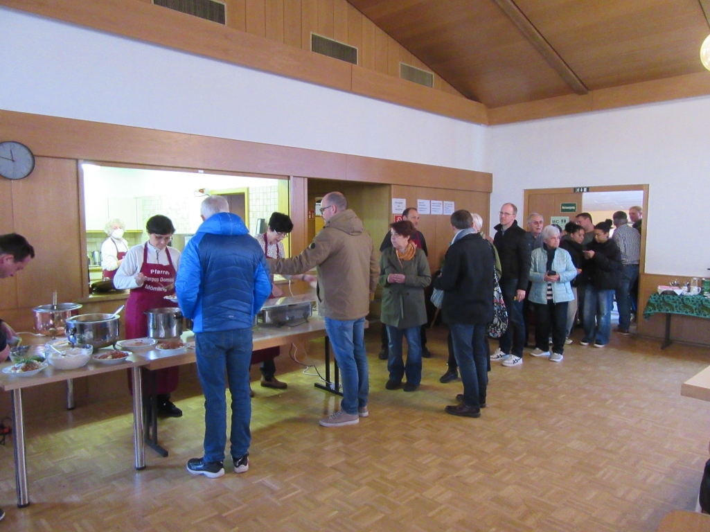 Am Ende dankte Robert Faust den zahlreichen Gottesdienstbesuchern und dem Chor „Lyra Musica“, der den Gottesdienst mit den einfühlsamen Liedern bereichert hatte. Er dankte aber auch dem Team, welches das solidarische Essen vorbereitet hatte und lud herzlich dazu ein.