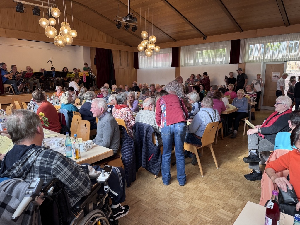 Ein besonderes Highlight am Nachmittag war das Rudelsingen mit der Ukulele-Gruppe des Wandervereins um Sabine Geis. Der Pfarrsaal war proppenvoll und dank ausgelegter Liederheftchen konnten alle aus Leibeskräften mitsingen.