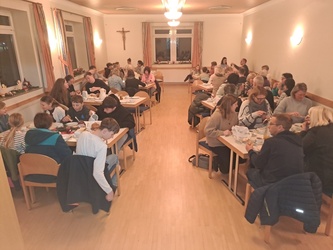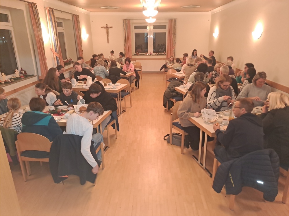 Nach den Rorate-Messen kamen alle Ministranten und die meisten der Gottesdienstbesucher zum gemeinsamen Frühstück zusammen, das wieder eifrige Helfer, vor Allem aus dem Senioren- und dem Gemeindeteam, im Haus der Begegnung vorbereitet hatten.