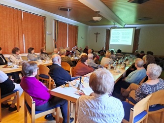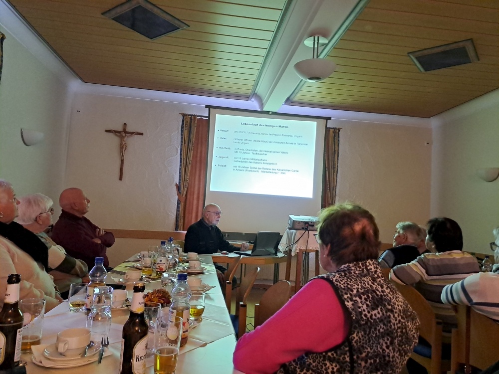 Pfarrer Simon berichtete passend zum Datum aus dem Leben und Wirken des Heiligen Martins. Durch Bilder, Daten, Anekdoten und Liedern, bei denen die Senioren eifrig mitsangen, von und über den Heiligen Martin, erfuhren die Anwesenden vieles, was den Meisten nicht bekannt war.