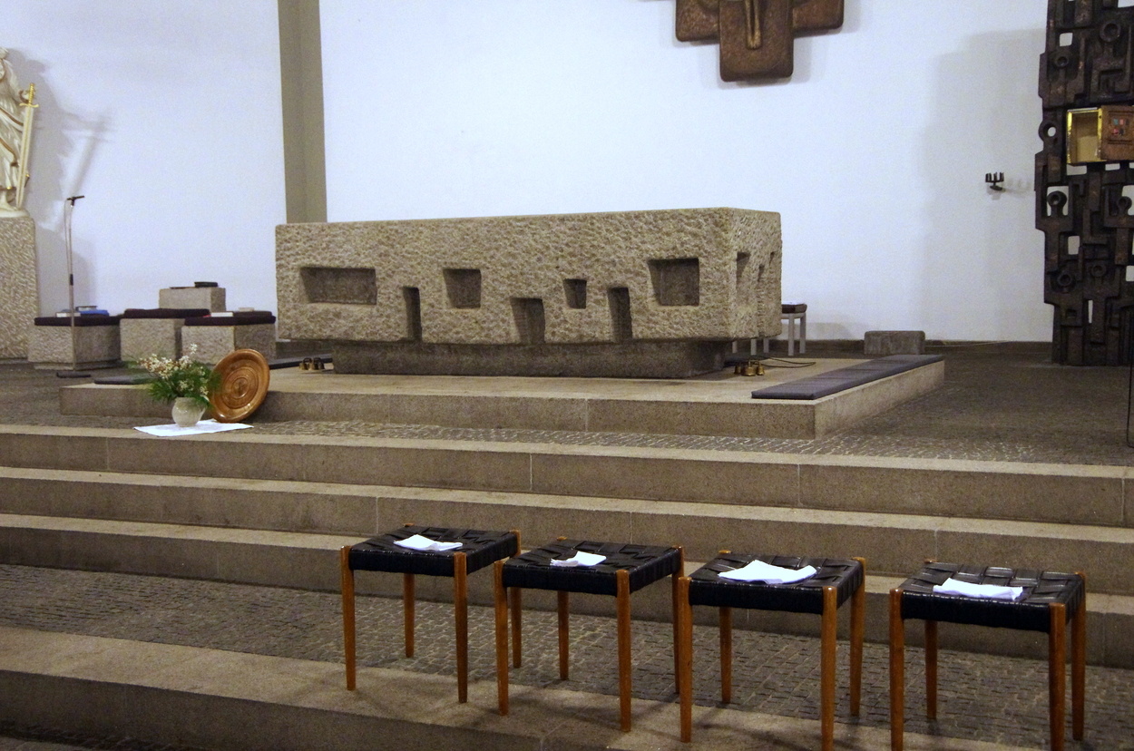 Nach dem Gottesdienst (oder, genauer: während des Gottesdienstes, denn dieser, das sog. triduum, geht von Gründonnerstag zur Osternacht, ohne Ende, ohne Anfang - allerdings trifft man sich in dieser Zeit doch nur dreimal in der Kirche und nicht ununterbrochen ;-)) wurde das Allerheiligste in die Unterkirche gebracht und der Altar abgeräumt, damit für Karfreitag alles leer ist - Verlassen - Jesus wird sterben.