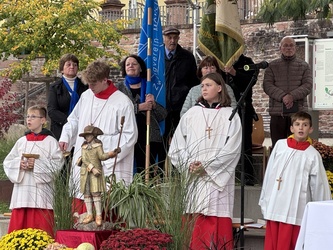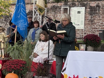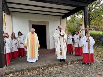 „Auch wir können uns von Gott beschenken lassen, wenn wir innehalten wie Wendelin. Wenn wir uns an Gottes Schöpfung in und um Mömlingen erfreuen können, wird unser Herz zum Leuchten gebracht und wir können Gott erahnen, denn er ist gar nicht so weit weg. Besuchen sie neugierig die Kapellen und Kirchen unserer Heimat und betrachten sie die Figuren genau. Orte, die uns tragen, Heimat, die etwas Besonderes ist. Gott ist auch in unserem Leben erkennbar und beschenkt auch dich und mich“, so sein Zuspruch an seine Zuhörer am Ende der Predigt.