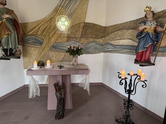 Pfarrer Spöckl stellte in seiner Predigt fest, dass man am Untermain viele Kapellen besuchen kann. Wenn man sich die Zeit dazu nimmt, kann man die besondere Aura spüren und sich im Tiefsten beschenken lassen. Man muss sich nur die Zeit nehmen, den Blick über die Heiligenfiguren schweifen lassen und überlegen, was sie den Menschen bedeuten.